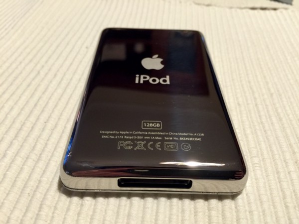 Since my first post about it the iPod has received a new click wheel, battery and back housing. I decided to also customise it a bit by swapping out the white click wheel with a black one and getting a custom back housing that has 128GB printed on it.